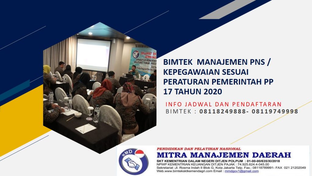 29 Jun Bimtek Bidang Kepegawaian, Bimtek Diklat Pilihan Jadwal Bimtek Manajemen PNS / Kepegawaian Sesuai Peraturan Pemerintah PP 17 Tahun 2020 1 Juli 2020 Oleh BIMTEK KEPEGAWAIAN Jadwal Bimtek Manajemen PNS / Kepegawaian Sesuai Peraturan Pemerintah ... Lanjutkan membaca