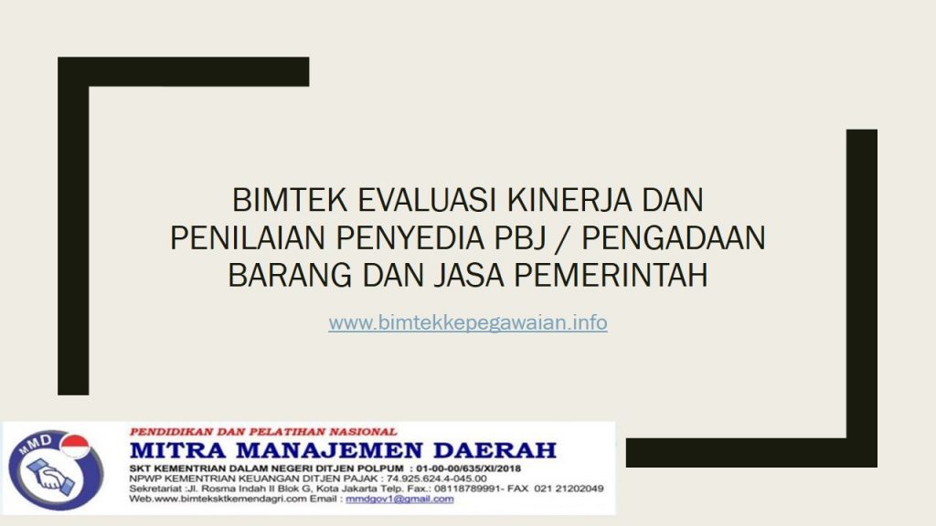 Bimtek Evaluasi Kinerja Dan Penilaian Penyedia PBJ / Pengadaan Barang Dan Jasa Pemerintah